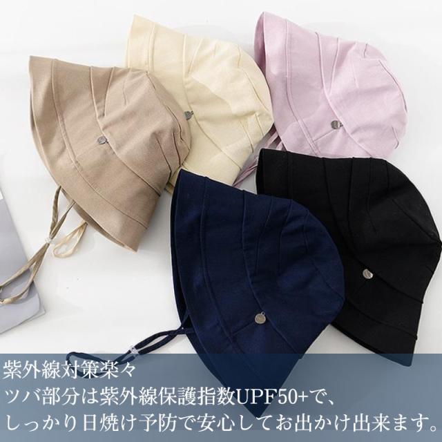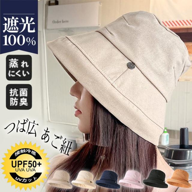 帽子 レディース 大きいサイズ 完全遮光 2way UVカット つば広 あご紐 バケットハット サイズ調整 自転車 飛ばない 日よ
