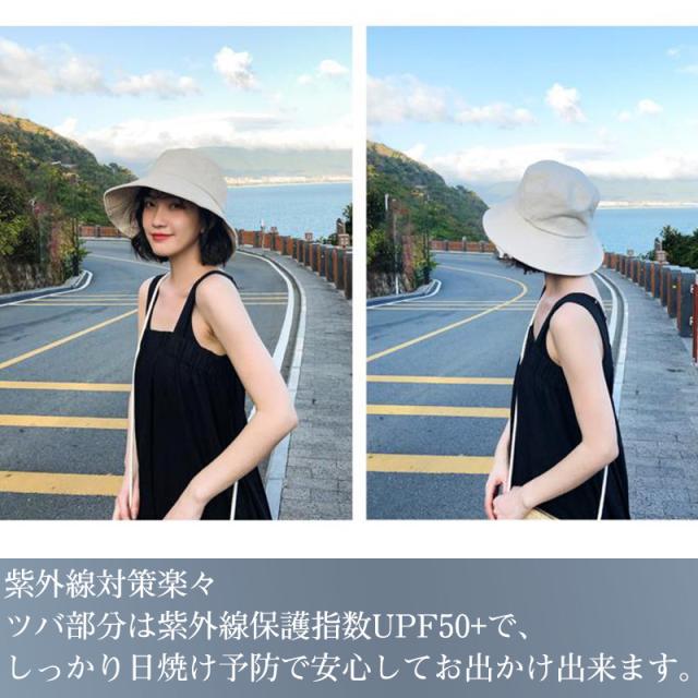 帽子 レディース ハット 日よけ帽子 つば広 UVカット アゴ紐付き バケットハット 小顔効果 紫外線対策 アゴ紐付き 無地 旅