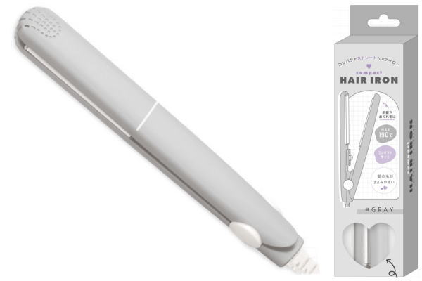 カミ302974 【ヘアアイロン】コンパクトストレートヘアアイロン【グレー】【灰色】【ヘアアイロン】【コテ】【ストレートアイロン】【髪の毛】【美容】【コスメ】【ヘアケア用品】【旅行】【トラベル】【コンパクト】【雑貨】【グッズ】【かわいい】