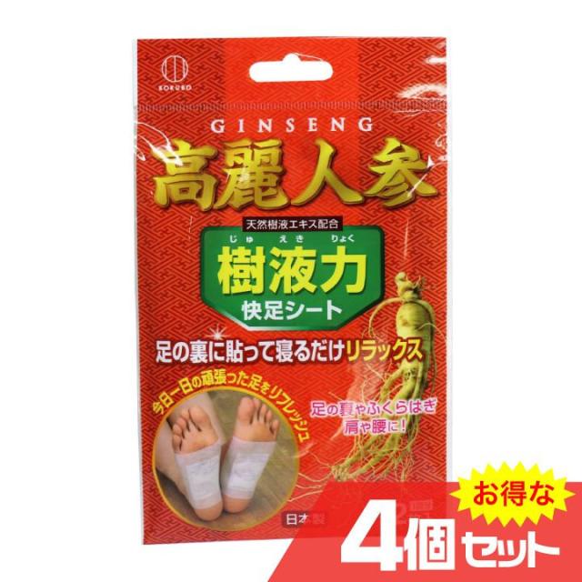 樹液力 高麗人参快足シート 1回分 2枚入x4個セット ポイント消化 足裏健康法 むくみ対策 温熱作用 シニアに人気 樹液 遠赤外線 新陳代謝