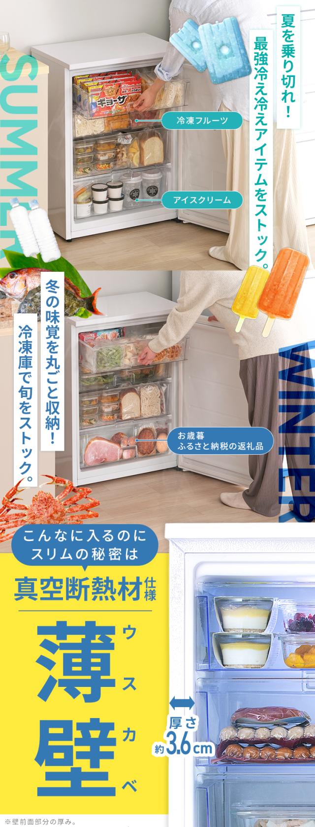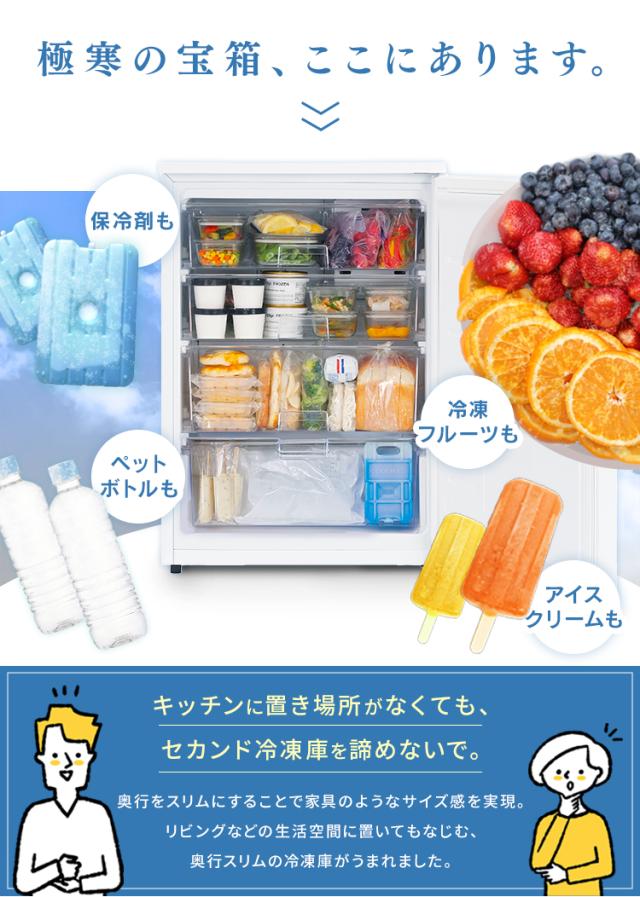 - 冷凍庫の容量を増やしたくサブとして購入。 昨今は在宅勤務増加で需要が増えたのかサブ冷凍庫の種類も豊富になってきたが、小型のものでも細長いタイプのものはあっても、奥行き方向に薄型のタイプは貴重で、我が家...
