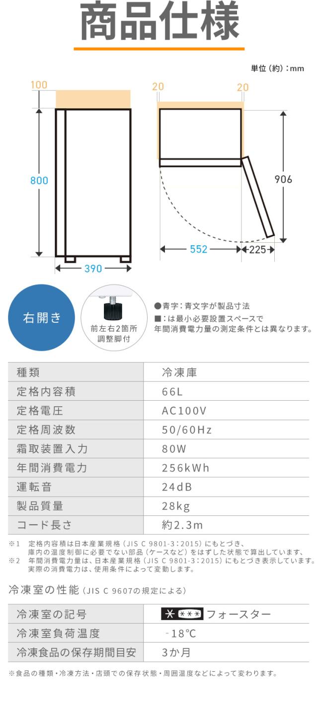 フォースター/冷凍負荷温度(食品温度)−18℃以下/冷凍食品保存期間の目安約3か月
