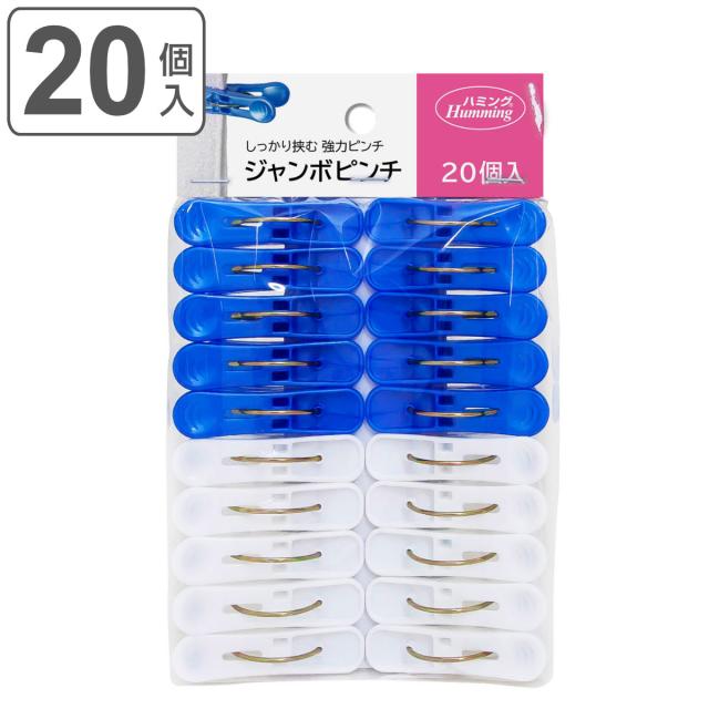 洗濯ばさみ ジャンボピンチ 20個入 ( 洗濯 ピンチ クリップ プラスチック 20個 洗濯用品 ランドリーグッズ 洗濯バサミ ブルー ホワイト 軽量 )
