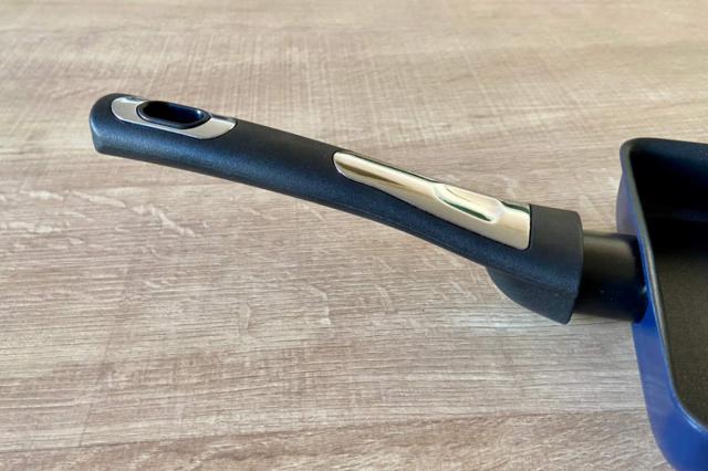 手に馴染みしっかり持つことができるハンドルです。引っ掛け穴があるので、場所を取らずに掛けて収納することができます。