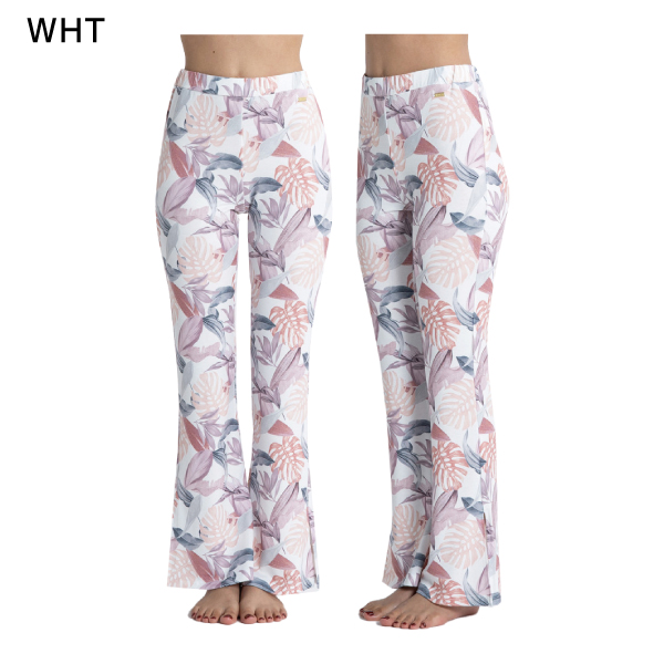 | | リゾートな雰囲気を醸し出すボタニカルプリントが印象的なフレアパンツ。UVカット加工を施した、速乾性に優れたコットン調の素材を使用しています。裾にはスリットを入れて、抜け感をプラス。ビーチやプールなどのレジャーシーンに、一着は持っておきたいアイテムです。デイリーに着るのもおすすめ。 |