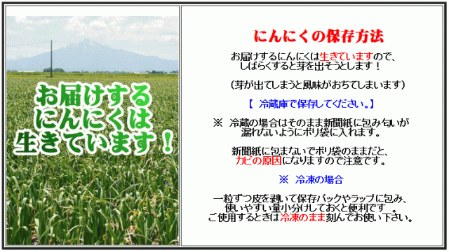 - 青森のにんにくがこの値段で買えて満足。しかも早期割引で更にお得。ちょっとしたレシピ、にんにくの効能のチラシが入っておりとても良いです。