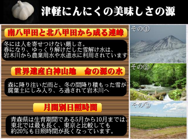 青森県産 にんにく が美味しい理由! 冬と夏の寒暖差! 青森県と言えば言わずと知れた雪国。 その過酷な寒さが野菜には最適な環境をもたらします。 にんにく は雪が降る前に植え、冬の雪の下で糖度を十分蓄え雪解けとともに成長! この環境が 身がひきしまり・甘味・風味 の抜群なにんにくなる秘訣なのです。 これが 青森県産 にんにく が愛される理由です。 |