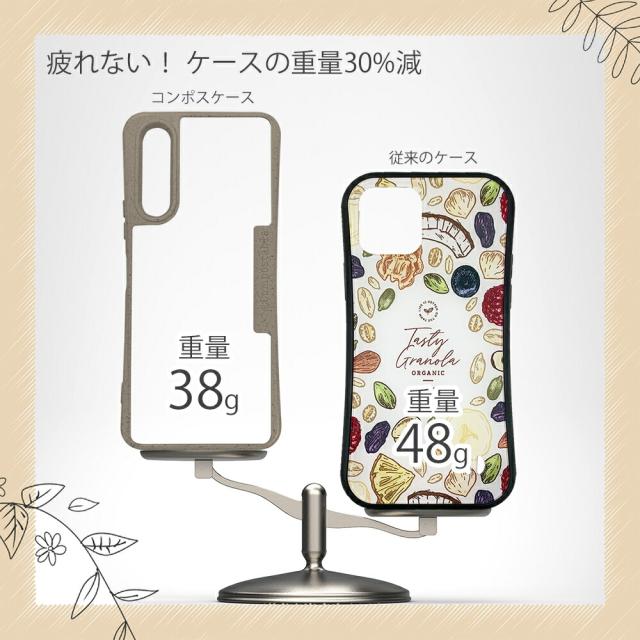 | 商品説明 | コンポスケースは、環境負荷低減を目的に開発されたスマホケース。従来のスマホケースと比べ、CO2排出量を50%削減できます。しかも、循環型社会に対応した素材を使ったケースです。![]() |