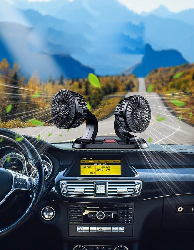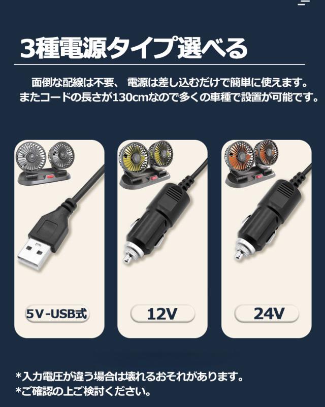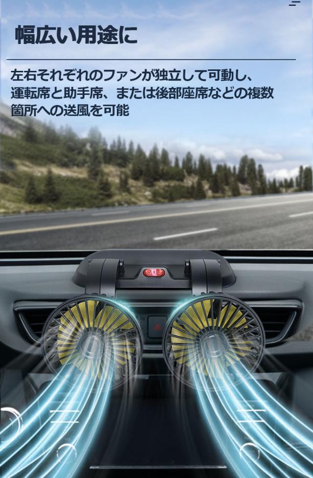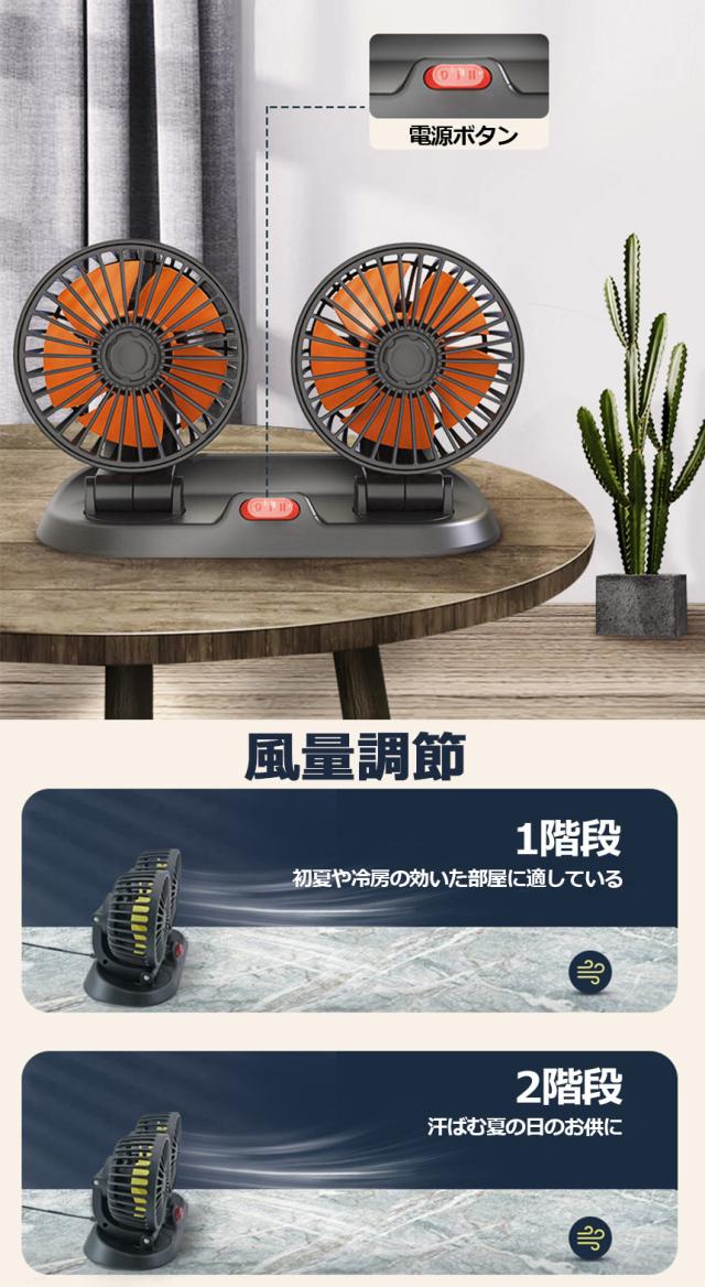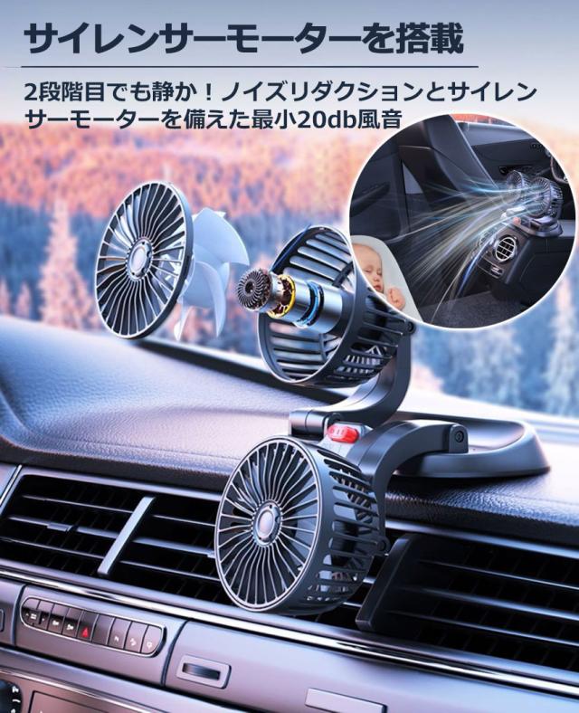 扇風機 車載扇風機 車用扇風機 車用 360度回転 5枚羽根 USB 12v/24v仕様 ダブルフ 熱対策 電動ファン 低騒音 風速風量調節可能 小型扇風機 車内 シガー 循環 省エネ暑さ対策 車中泊 蒸れる 暑い 汗 涼しい ファン シガーソケット 熱中