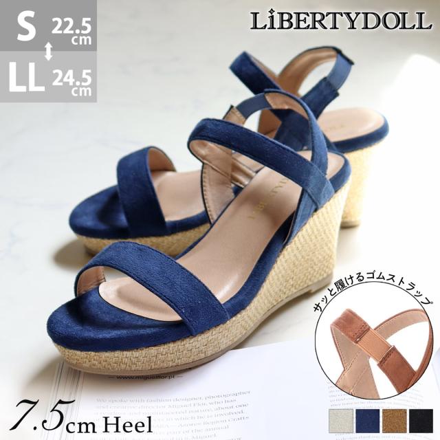 サンダル レディース ストラップ 厚底 ハイヒール ウェッジソール ゴム 7.5cmヒール 脱げない 痛くない 合皮 スエード 22.5-24.5cm No.4022 リバティードール