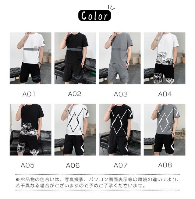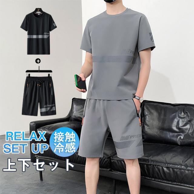 セット メンズ 夏服 半袖 ジャージ 上下セット ショットパンツ サマー 通気 部屋着 接触冷感 涼しい ゆったり トップス
