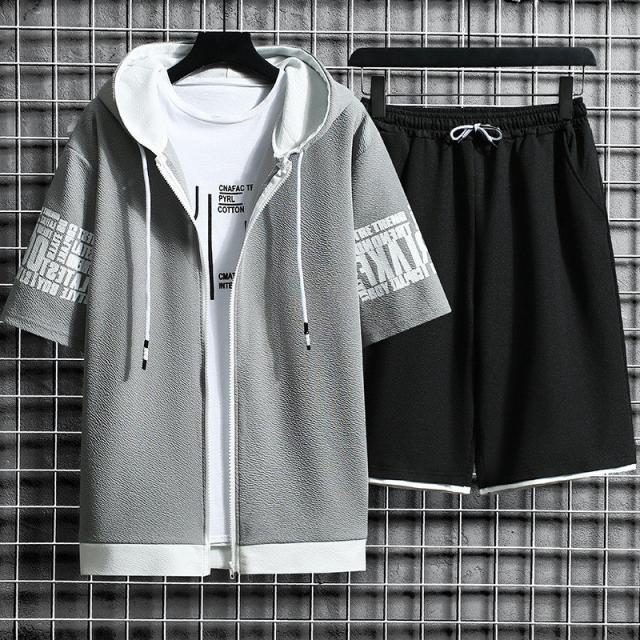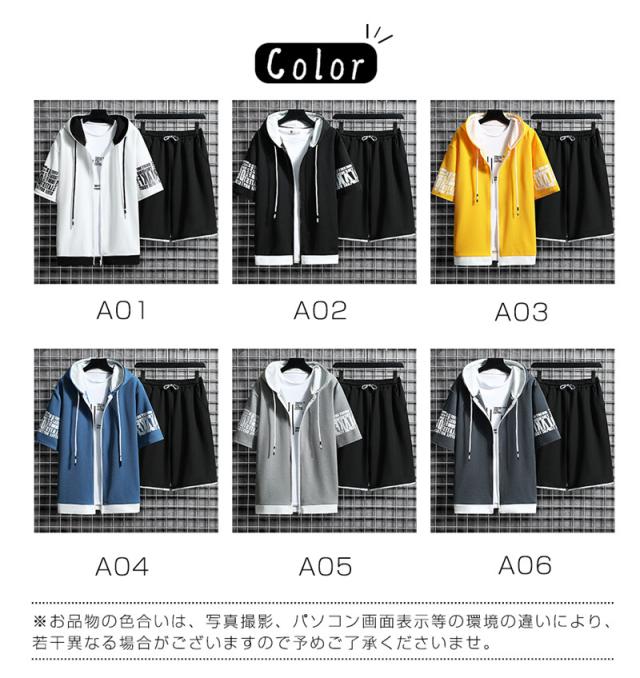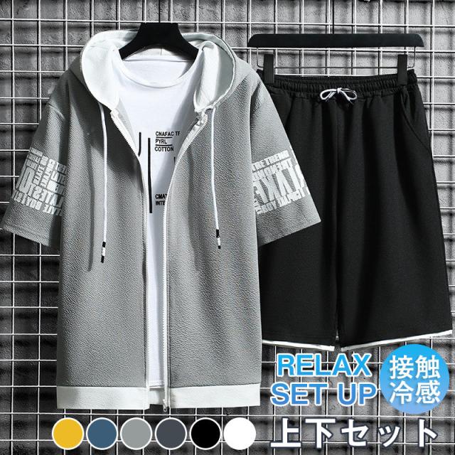 セット メンズ 夏 半袖 ジャージ 上下セット ショットパンツ フード付き 部屋着 接触冷感 ひんやり ゆったり トップス