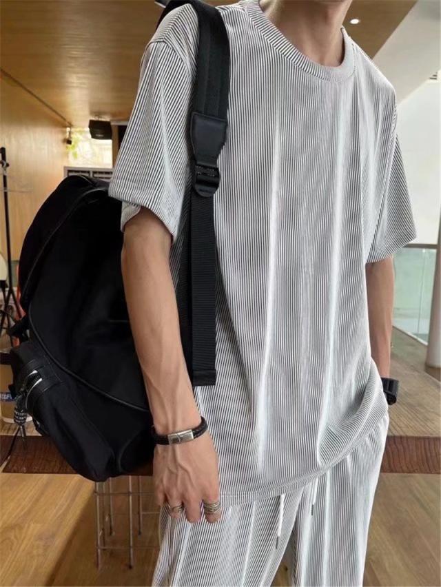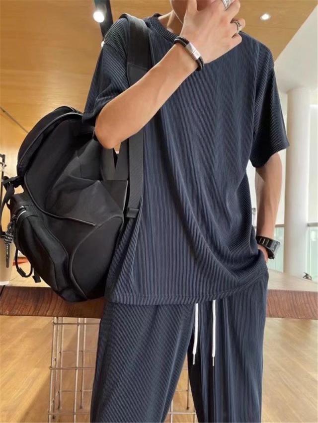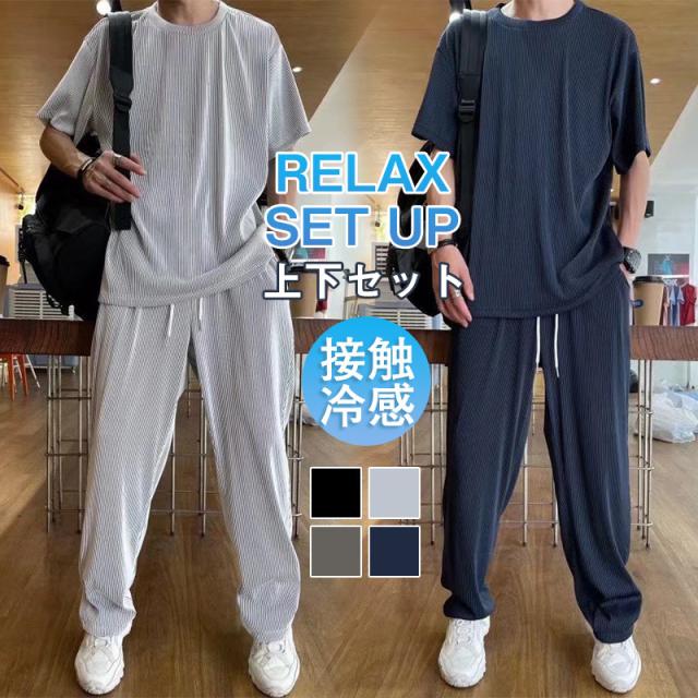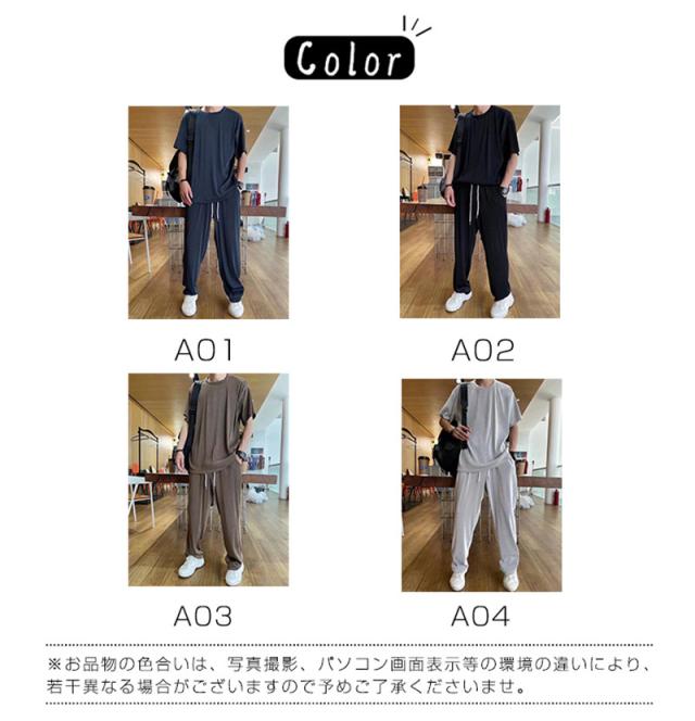 セット メンズ 夏服 半袖 ジャージ 上下セット ロングパンツ サマー 通気 部屋着 接触冷感 涼しい ゆったり トップス