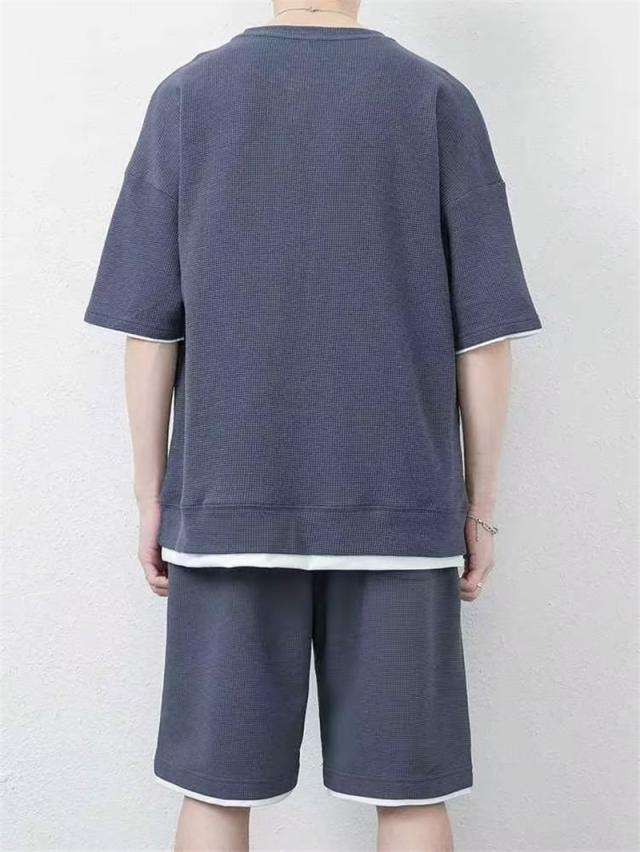 セット メンズ 夏服 半袖 ジャージ 上下セット ショットパンツ サマー 通気 部屋着 接触冷感 涼しい ゆったり トップス