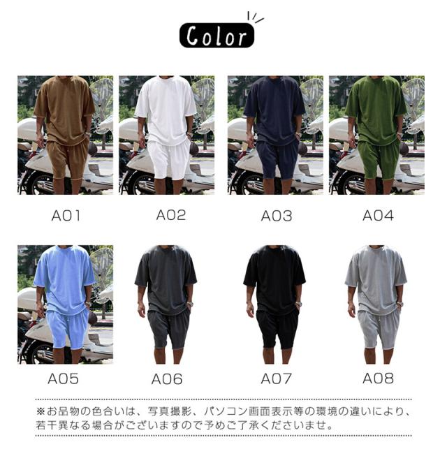 セット メンズ 夏 半袖 ジャージ 上下セット ショットパンツ サマー 薄手 部屋着 接触冷感 ひんやり ゆったり トップス