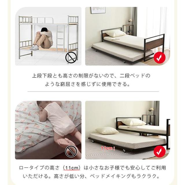 【誰でも使用いただけるベッド】一緒に住んでいる親子や、転勤が多い単身赴任の方、一人暮らしを始める学生、そして訪れた親戚や友達にも最適です。子供から大人まで幅広い年齢層に対応しており、様々な用途に使用できる優れたベッドです。