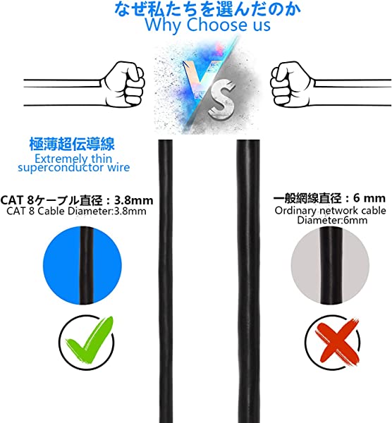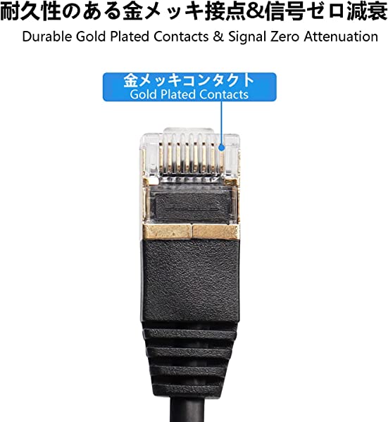 【より安定】Cat 8ネットケーブル両端に金メッキRJ45コネクタを採用し、ケーブルの導電性と抗酸化性を向上。 シールドデザインは、電磁干渉や射周波数干渉を防ぎます。 安定したネットスピードを保持。