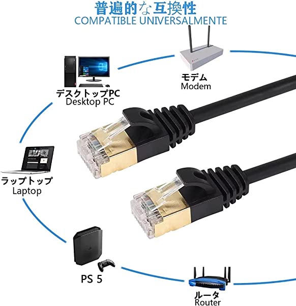 【幅広い互換性】Cat8はイーサネットケーブルの両端に2シールドRJ45コネクタがあり、以前のすべてのケーブル(cat5、cat5e、cat6aとcat7)と互換性があり、IP