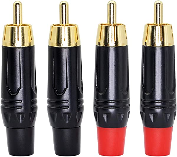 rcaヘッドの外径:約9mm内径:約5mm(取り外し可能な柔らかい赤い接着剤と黒い接着剤)は、6.5MM未満の外径のケーブルに適しています。材料は純銅と金メッキで構成され、製品には4(2つのブラック、2つのレッド)があります。優れた導電性、接触、耐摩耗性