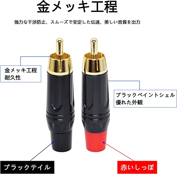 RCA ペアプラグ rcaオスプラグ ステレオミニプラ rca オーディオ 変換プラグ 金メッキコネクタ スピーカ ミキシングコンソ-ル パワーアンプに適しています 4個セット
