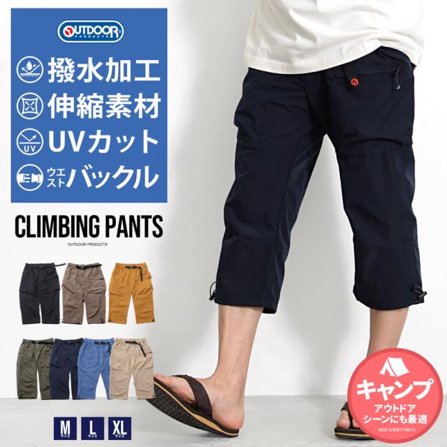 OUTDOOR クロップドパンツ メンズ おしゃれ 撥水 ストレッチ 伸縮性 ハーフパンツ 短パン ショートパンツ 7分丈 七分丈 クライミングパンツ パンツ UVカット 無地 シンプル M L XL アウトドア 父の日 20代 30代 40代 ユニセックス 男性 男 服 春 夏 夏服 ファッション [80880]