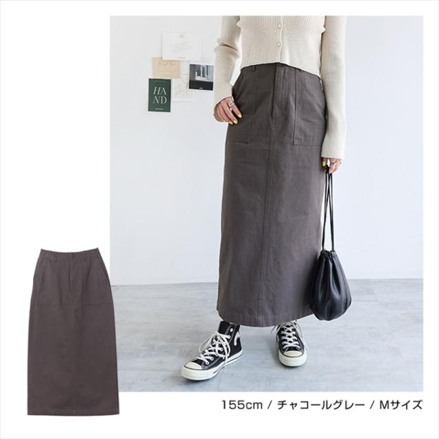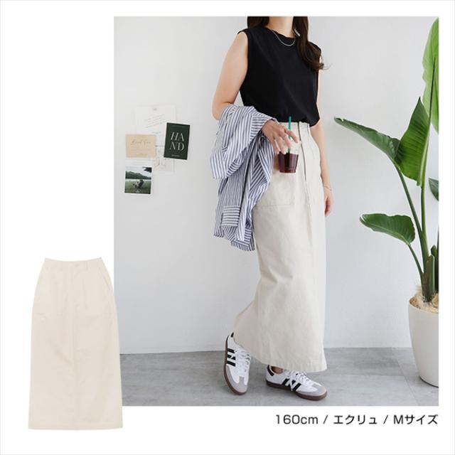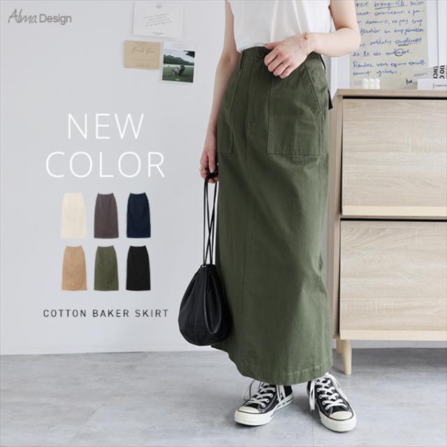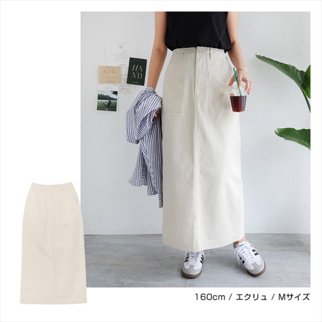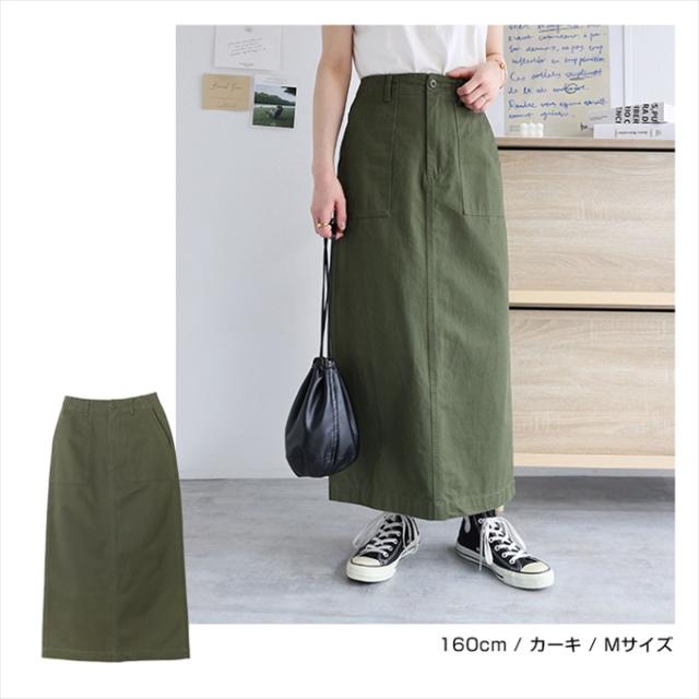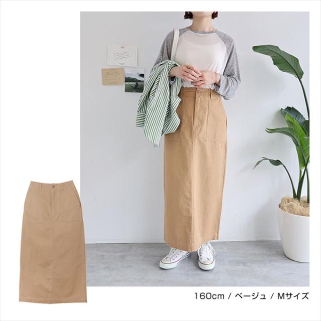 ハイウエスト ベイカー スカート レディース タイト サイドポケット バックスリット カジュアル 抜け感 コットン 綿100% ロング ロング丈 レディースボトム ボトムス おしゃれ かわいい 大人 ファッション オフィス きれいめ 学生 カジュアル 春 1000786