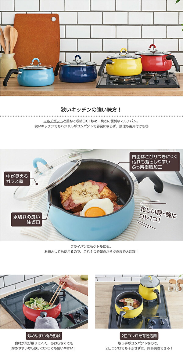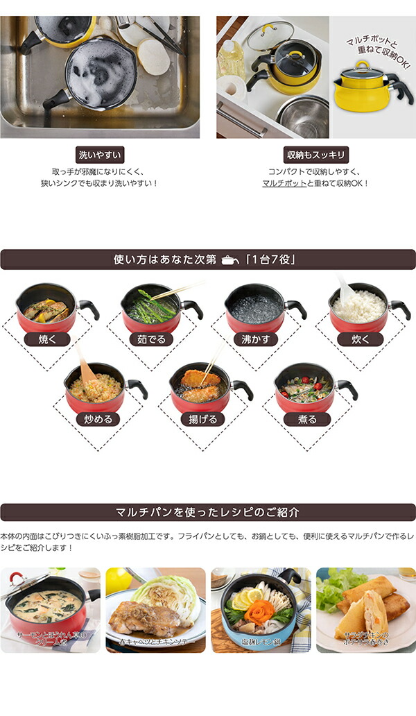 炒め・焼きに便利なマルチパンは、マルチポットと重ねて収納OK。