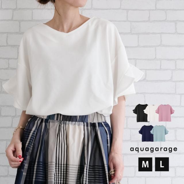 ≪ゆうメール便配送10・代引不可≫ Vネックフリル袖ブラウス 春 夏 秋アクアガレージ aquagarage