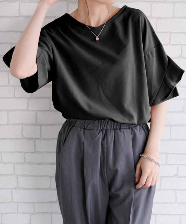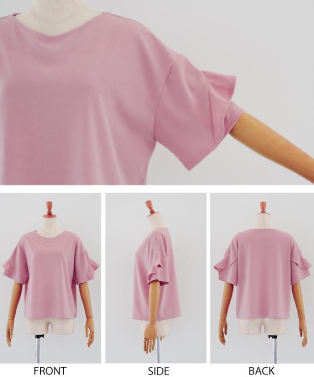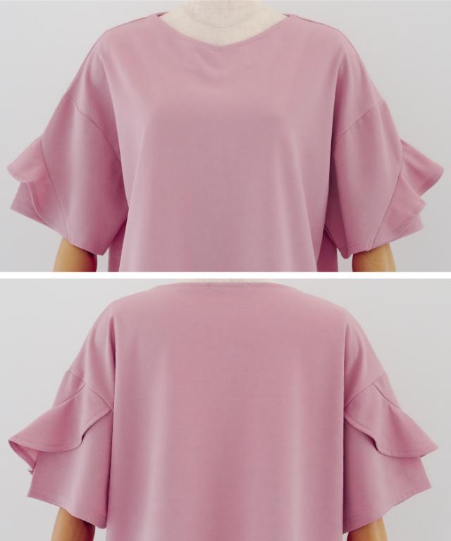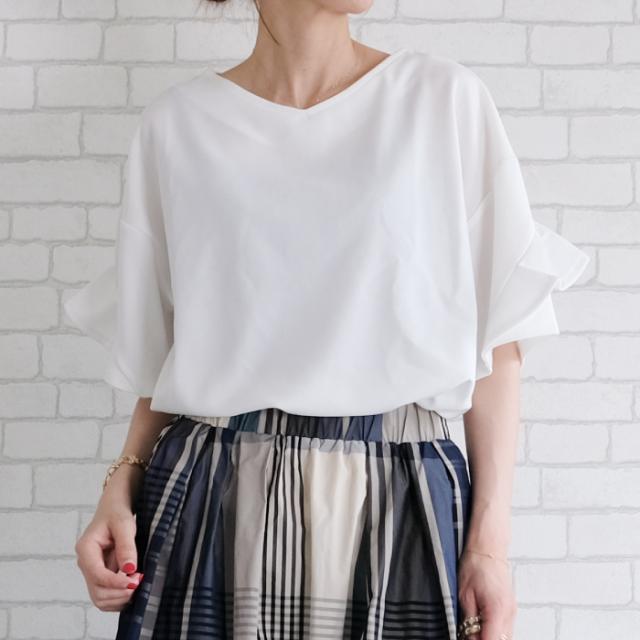 上品キレイで可愛く華奢魅せ♪Vネックフリル袖ブラウス