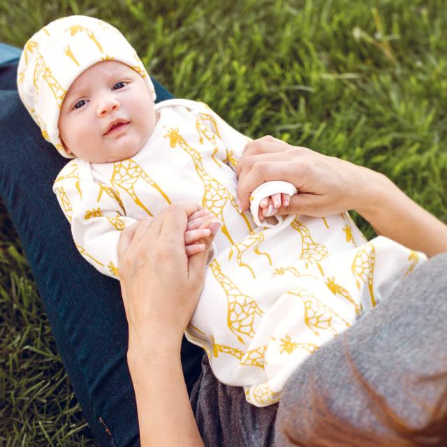 敏感なお肌を守るオーガニック素材使用のガウンとハットのセット