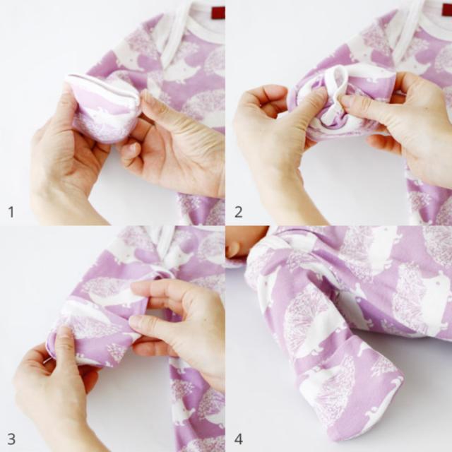 袖先をひっくり返すと、ベビーの手を守る手袋に変わります。寒い時期の冷え対策や手で引っかいてしまうのを防ぎます。