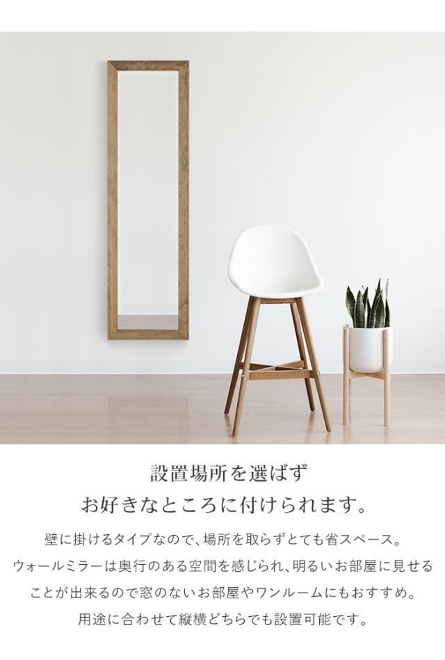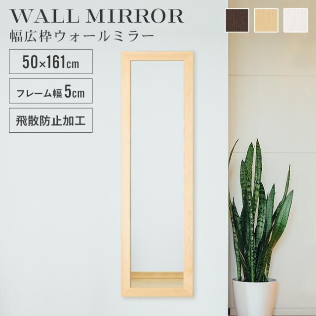 壁掛け鏡 姿見 鏡 ウォールミラー スリム 高さ161 幅50 日本製 壁掛けミラー 吊り下げ 全身 全身鏡 幅広枠 おしゃれ シンプル モダン 長方形 木目 完成品 上品 日本製 国産 ミラー 姿見 玄関 身だしなみ オシャレ 壁 生活 部屋 化粧