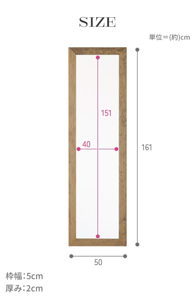 【値下げ】姿見 鏡 ウォールミラー スリム 高さ161 幅50 日本製 壁掛けミラー 吊り下げ 全身 全身鏡 幅広枠 おしゃれ 完成品