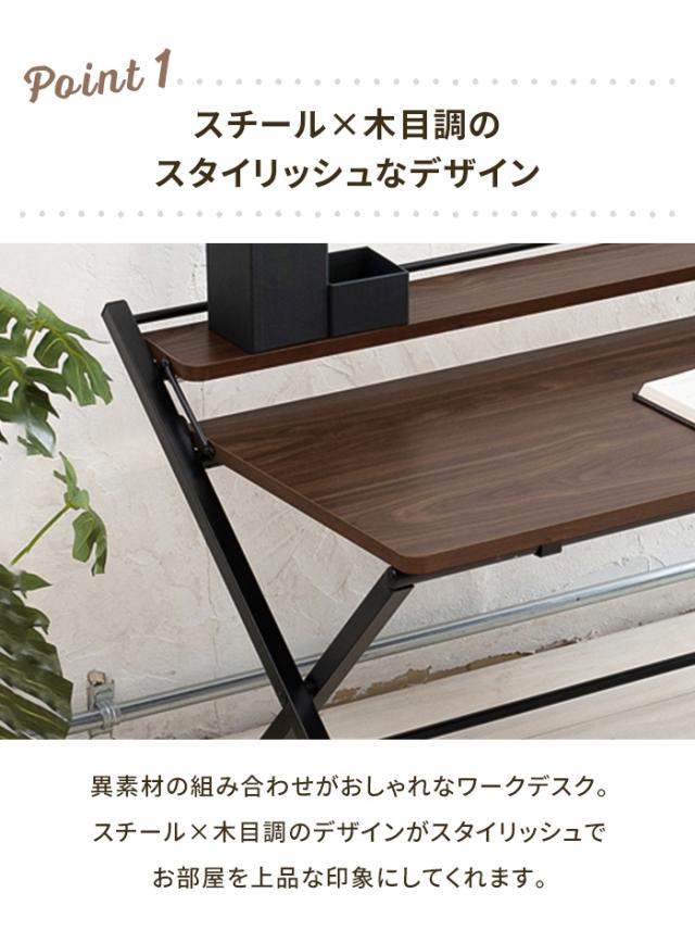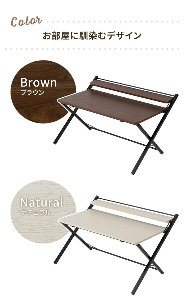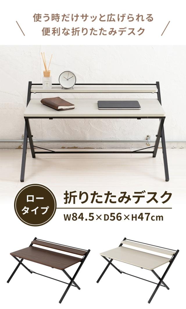 【値下げ】折りたたみテーブル 折りたたみデスク 幅84.5 ローテーブル コンパクト ワークデスク 木目調 完成品 テレワーク 机 棚付き