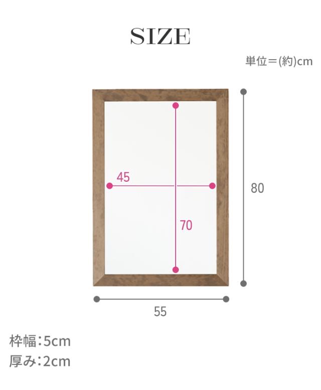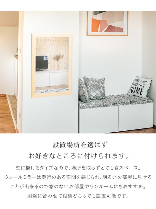 ウォールミラー 壁掛けミラー 鏡 高さ55 幅80 長方形 姿見 壁掛け鏡 吊り下げ おしゃれ 北欧 インテリア 高級感 ナチュラル モダン 完成品 長方形 日本製 上品 国産 ミラー 姿見 玄関 身だしなみ オシャレ 壁 生活 部屋 化粧