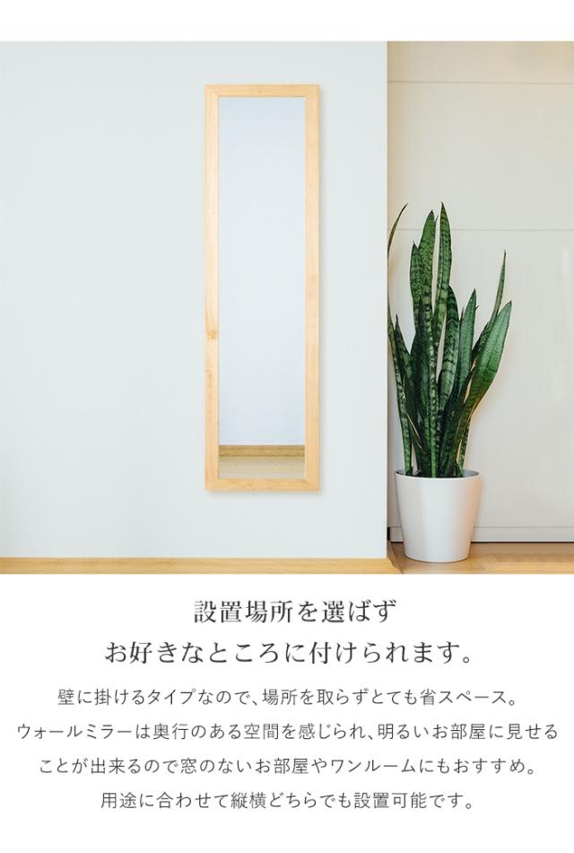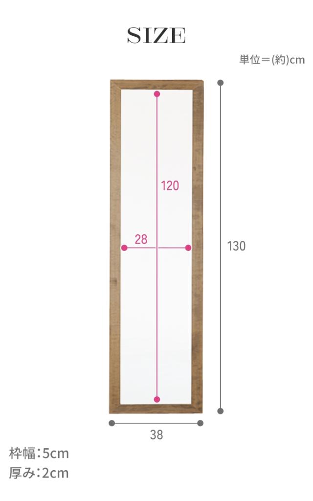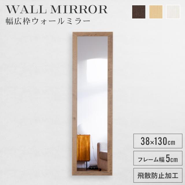 壁掛け鏡 姿見 鏡 ウォールミラー スリム 高さ130 幅38 日本製 壁掛けミラー 吊り下げ 全身 全身鏡 幅広枠 おしゃれ シンプル モダン 長方形 木目 完成品 上品 国産 ミラー 姿見 玄関 身だしなみ オシャレ 壁 生活 部屋 化粧