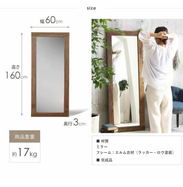 シンプルなデザインながらフレームにはエルム古材を使用した、ヴィンテージスタイルな大型スタンドミラー・AR-ELM。