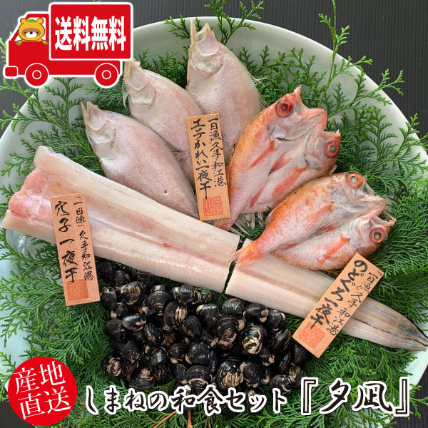 (地域限定送料無料) 岡富商店 しまねの和食セット『夕凪』(ゆうなぎ)〈冷凍しじみ(500g)・のどぐろ2枚(計120g)・穴子1枚(100g)・エテかれい3〜4枚(計 200g)〉冷凍 干物セット ギフト(sot130)