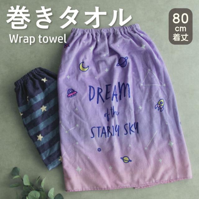 【圧縮メール便1枚のみ送料無料】キッズ巻きタオル【約80cm丈】ラップタオル プール パープル ボーダー ネイビー 海 水泳 キッズ 【N】【M】