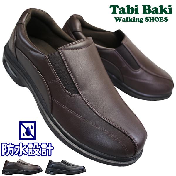 防水ウォーキングシューズ TabiBaki MC7516 ブラック ダークブラウン 24.5cm〜27cm メンズ スリッポン スニーカー シューズ 紐なし靴 4E