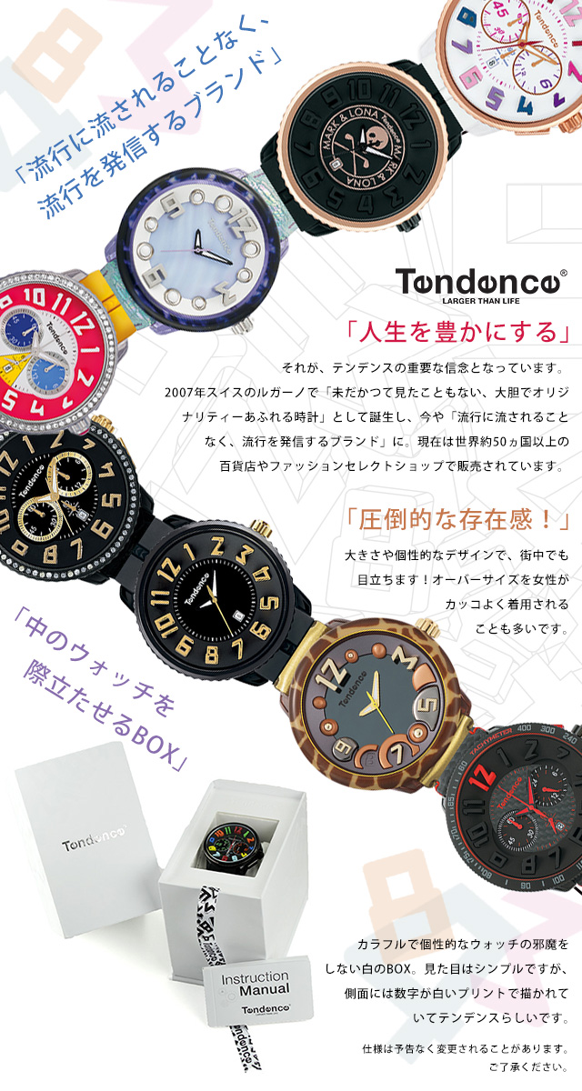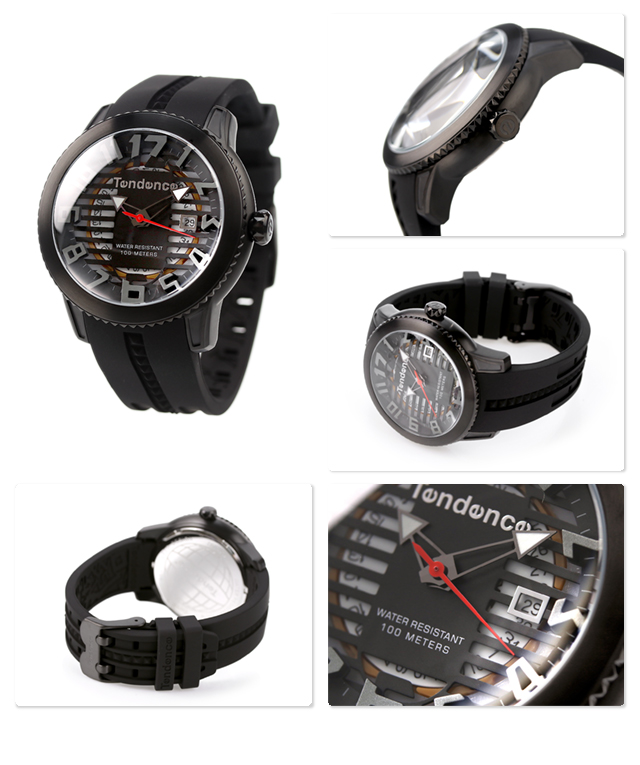 正規品 7年保証キャンペーン テンデンス クオーツ メンズ 腕時計 TY013002 TENDENCE アナログ ブラック 黒 ◆TENDENCE(テンデンス)は、イタリア国内でもっとも歴史のあるスイス時計の一つ「Fhilip Watch」のフィリッポ・ジャルディエッロ氏の「もっとユニークで遊び心を持つ、かつてない時計を」という強い思いから誕生した話題のブランドです。 初期ルネサンス時代のイタリア建築からインスパイアを受けたコレクションです。分厚いドーム型レンズが時計のフェイス内をより立体的に見せます。全体的に丸みのあるケースやレンズが腕にフィット。文字盤のカット部分から覗く内部が、お洒落な腕時計です。 発売日:16年2月発売