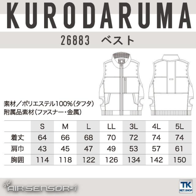 クロダルマ ベスト サイドファン仕様 ポリエステル100% メンズ 空調ウェア 作業服 作業着 長袖 春夏 空調作業服 AIR SENSOR-1 単品 kd-26883-t