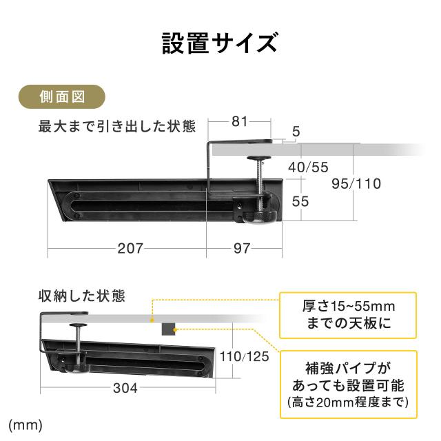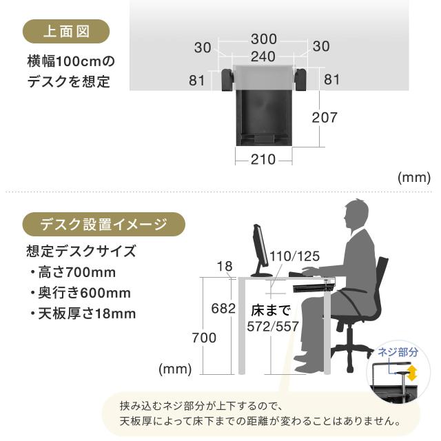 ■対応デスク:天板裏に引き出し等が無いフラットな机、木製天板で厚さ15mmから40mmまでの机取扱説明書