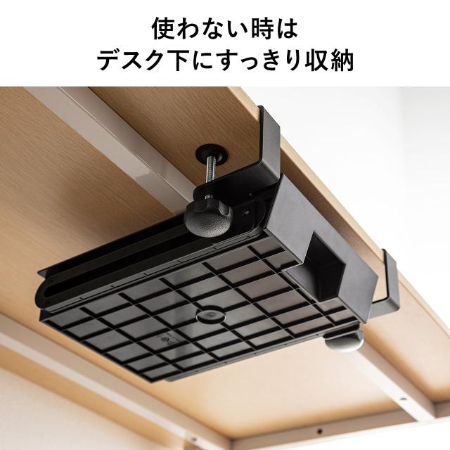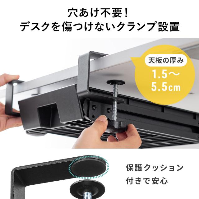 ●デスクへの穴あけが必要なく、挟み込んでの取り付けができます。