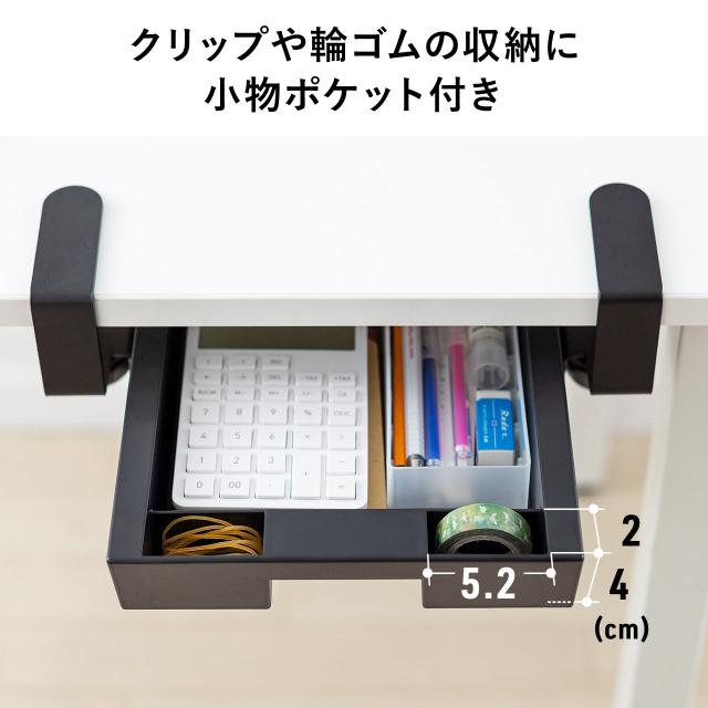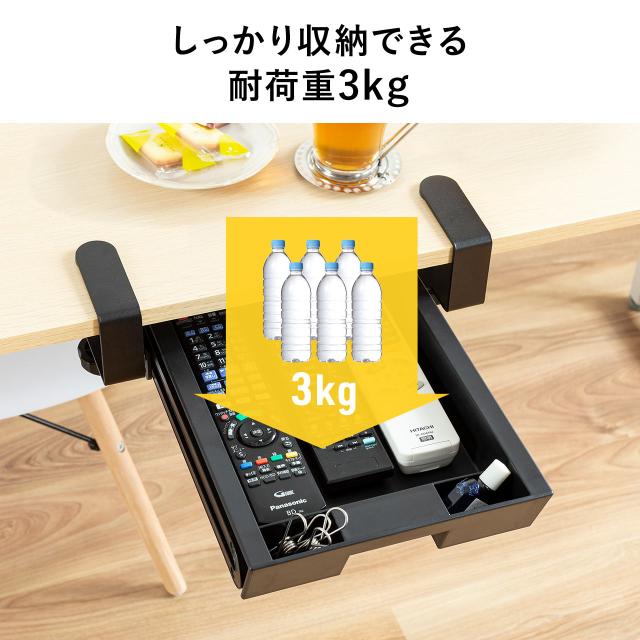 クランプ式引き出し トレー 後付け デスク設置 デスク下 小物収納 スライド 引き出し内寸幅17.8cm 奥行き25cm[100-KB019]