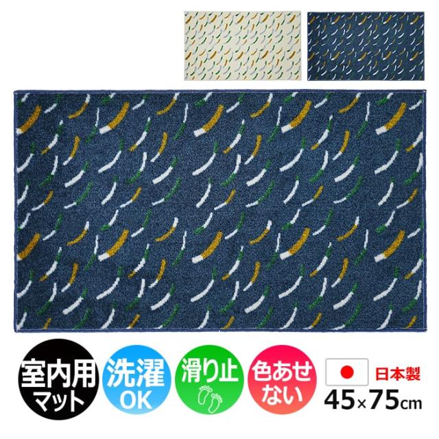 玄関マット 室内 おしゃれ 北欧 洗える マット キッチン 室内 屋内用 約 45×75cm 北欧 かわいい Tomoko Murata Breeze (R) ブリーズ (そよ風) シンプル ブルー アイボリー 紺 白 滑り止め付き フロアマット 日本製 裏面不織布 洗面所 脱衣所 引っ越し 新生活