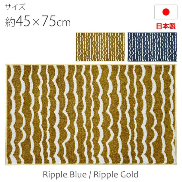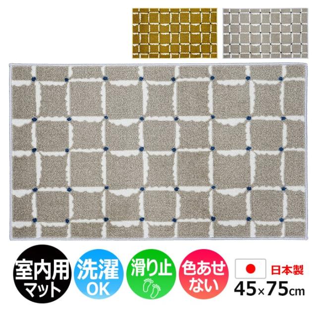 玄関マット 室内 おしゃれ 北欧 洗える マット キッチン 室内 屋内用 約 45×75cm 北欧 かわいい Tomoko Murata Windcheck (R) ウインドチェック (風×格子柄) シンプル グレー ゴールド 滑り止め付き フロアマット 日本製 裏面不織布 洗面所 脱衣所 引っ越し 新生活