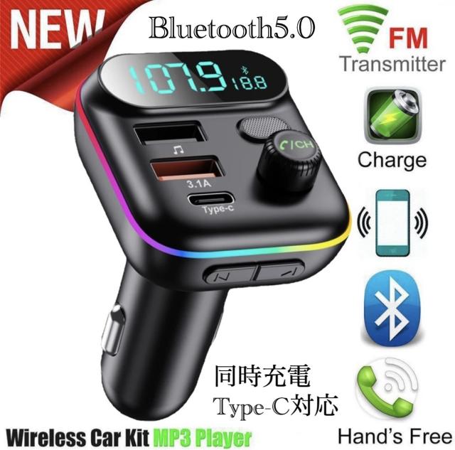 4 Bluetooth FMトランスミッター 充電器 充電 Type-C 対応 二台同時充電 ハンズフリー スマホ シガーソケット SDカード USB 無線 車載 車内 カーアクセサリー