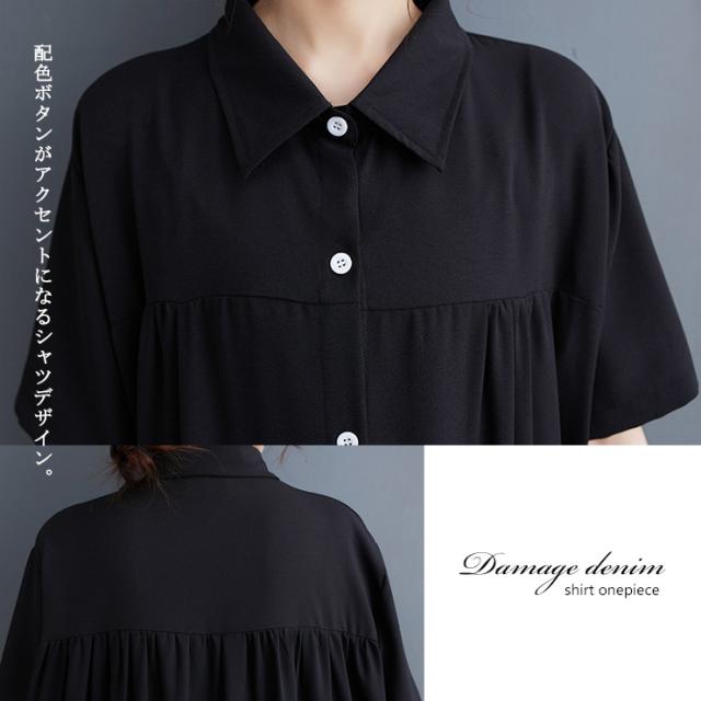 ★☆大きいサイズレディース ドッキングワンピース デニム切替ワンピ オーバーサイズ 異素材 半袖 夏 LL 3L 4L 5L 6L ブラック 新入荷 メール便不可☆★