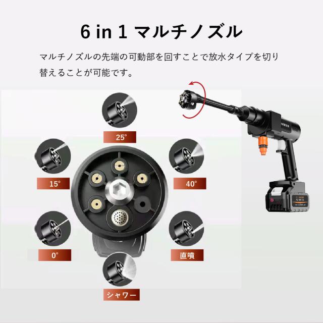 ★6in1マルチノズル付きで6つのスプレーモードを切替ることが可能です。
